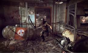 The game play for this game is very mediocre with nothing to memorable about it. This is one of the downsides to RAGE. The game just feels like another shooter with only so many weapons where you can do some minimal customization, along with change the ammo type. The characters are very well done and look good but most of the game is them telling you to do stuff for them while they work on something. The game does go from fetch quest to fetch quest with a couple "dungeons", where you go into a bandit stronghold, authority place, etc, where you will then just do some task that you were sent out to do. These can get tedious after a while but they do help the story along. There are so many different elements of game play though none of them feel as complete for example, there is a trading card game where you can challenge this guy to this game where you collect cards in the game and can challenge this one guy. The problem here is that it is the one guy with another guy later. This does not really make collecting the cards worth a lot of the time. Another thing would be the racing, though fun it is a couple tracks over and over with them occasionally reversing the direction you drive. You then win these racing tickets that let you get upgrades for the few vehicles you get in this game. So this game does many things but none of them are anything more then a distraction from the main quest and can be left alone. The saving grace of this game is the combat, with some items you can craft, you can make RC cars that have bombs and can explode, there is also the wingstick that can be thrown and sometimes breaks but does good damage against enemies. The guns feel a little weak considering how many shots it takes to down an enemy but ammo is not always in short supply. The enemy AI feels good with them avoiding grenades and staying behind cover and taking shots at you when they can.